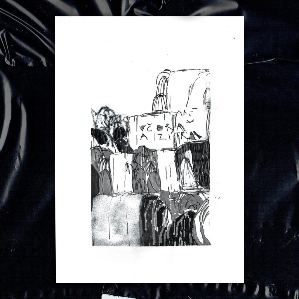 P. seděl na okraji mlhy schodiště. V ruce držel kartu s číslem. S číslem, co se měnilo, když na něj nemyslel. Vedle něj stál T., opřený o stěnu – kámen, ten byl měkký jako vzpomínka.